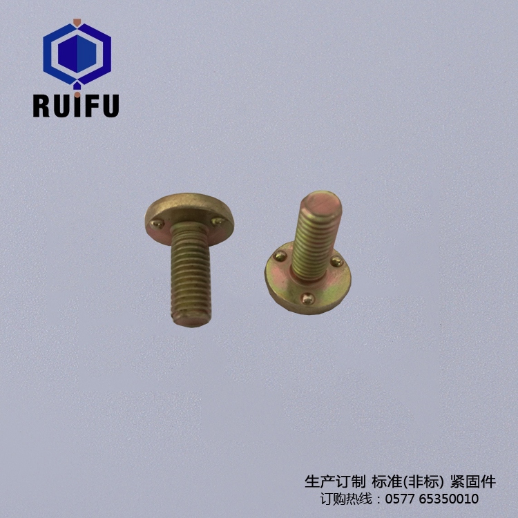 焊接螺栓兩端都有螺紋,一端必須全部旋進被連接零件的螺孔內,稱為旋進端;另一端用以擰緊螺母,稱為緊固端。畫螺栓連接的裝配圖同樣應先計算出焊接螺栓的公稱長度,並取標準值。