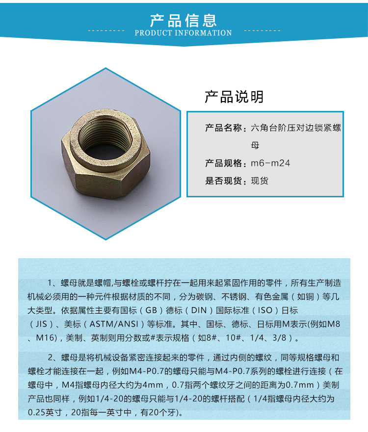 內六角台階壓對邊鎖緊螺母的高強連接性方式,螺母的作用方式有很多,尤其是內六角台階壓對邊鎖緊螺母,其通常作為用於裝配塑料零件z常用的緊固件,其既可用於不動的裝配,也可用於經常修理更換的零件的固定。選擇不合適的內六角螺栓常常會導致裝配、使用和質量的問題。預先在模具內設計出在零件裝配中的螺紋。內六角螺絲釘的類型既可以是普通螺紋的螺釘也可以是自攻螺釘。內六角螺絲釘是z經濟的連接方式,其具有強度高、結實、保障的 特點。能保證產品的使用。