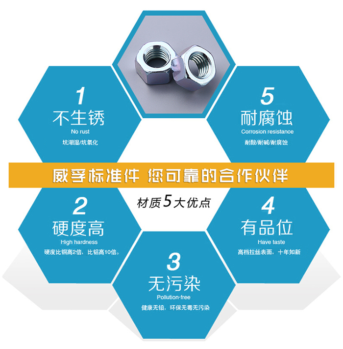 高性能WF004国产探花约炮由螺母本體和底盤組成,螺母本體為六角棱柱狀,WF004国产探花约炮本體中間部位設有圓形狀通孔,圓形狀通孔上設有內螺紋,螺母本體的一個側麵上設有凸塊,該側麵對立的側麵上也設有凸塊,產品的凸塊設置在螺母本體側麵的中間處,凸塊為圓柱狀,凸塊與螺母本體通過一次性加工而成;螺母本體下方設有底盤,產品的底盤為圓形狀,底盤中間部位為圓形空心狀,底盤中間空心部分上設有內螺紋,產品的內螺紋高度為底盤高度的1/2,底盤中間的空心部分與螺母本體上的圓形通孔大小一致且互相重疊;底盤的底麵設有四個焊點,焊點均勻分布在底盤下底麵的外邊緣處,焊點為半球結構,焊點高度為1.5cm。本高性能焊接六角的牢固性得到了增強。